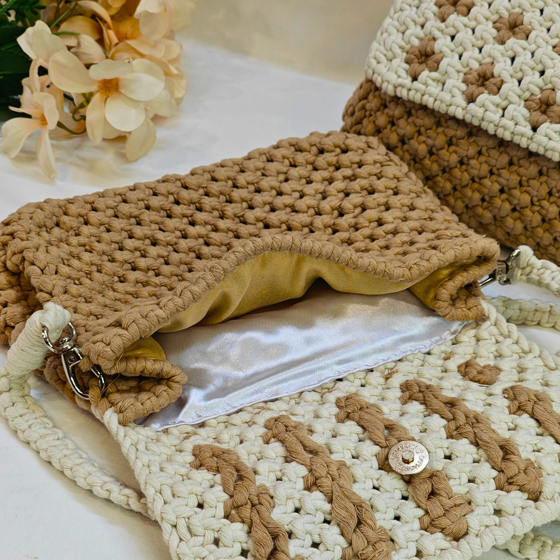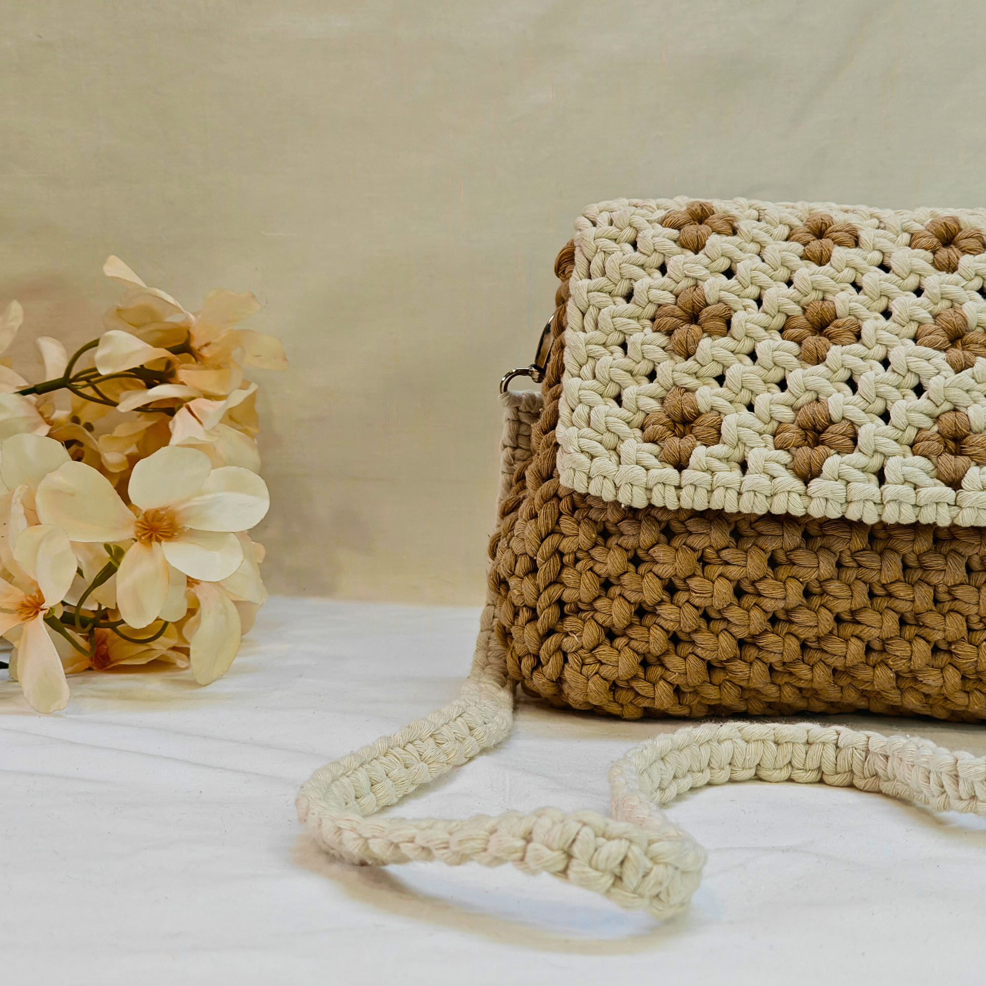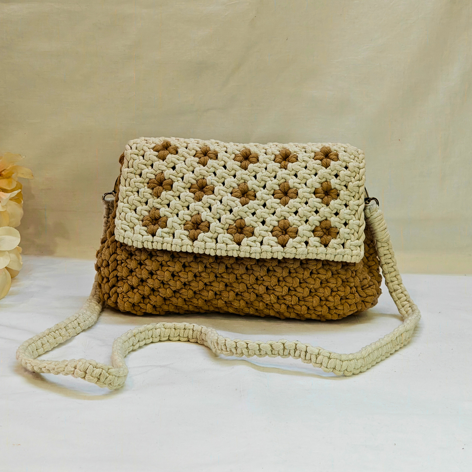 Beige Bloom Macrame Sling Bag