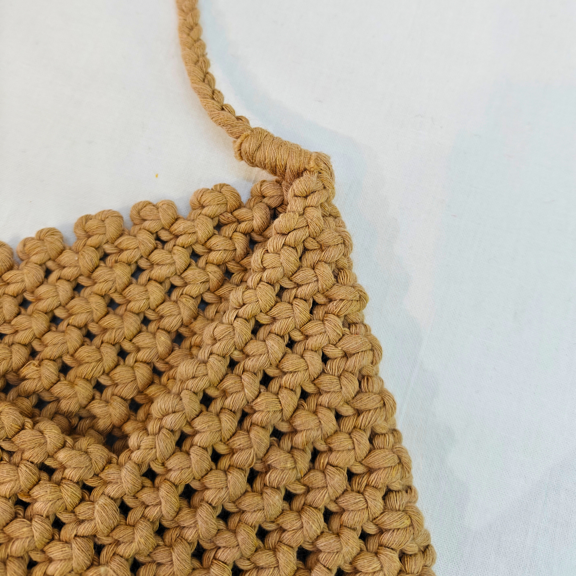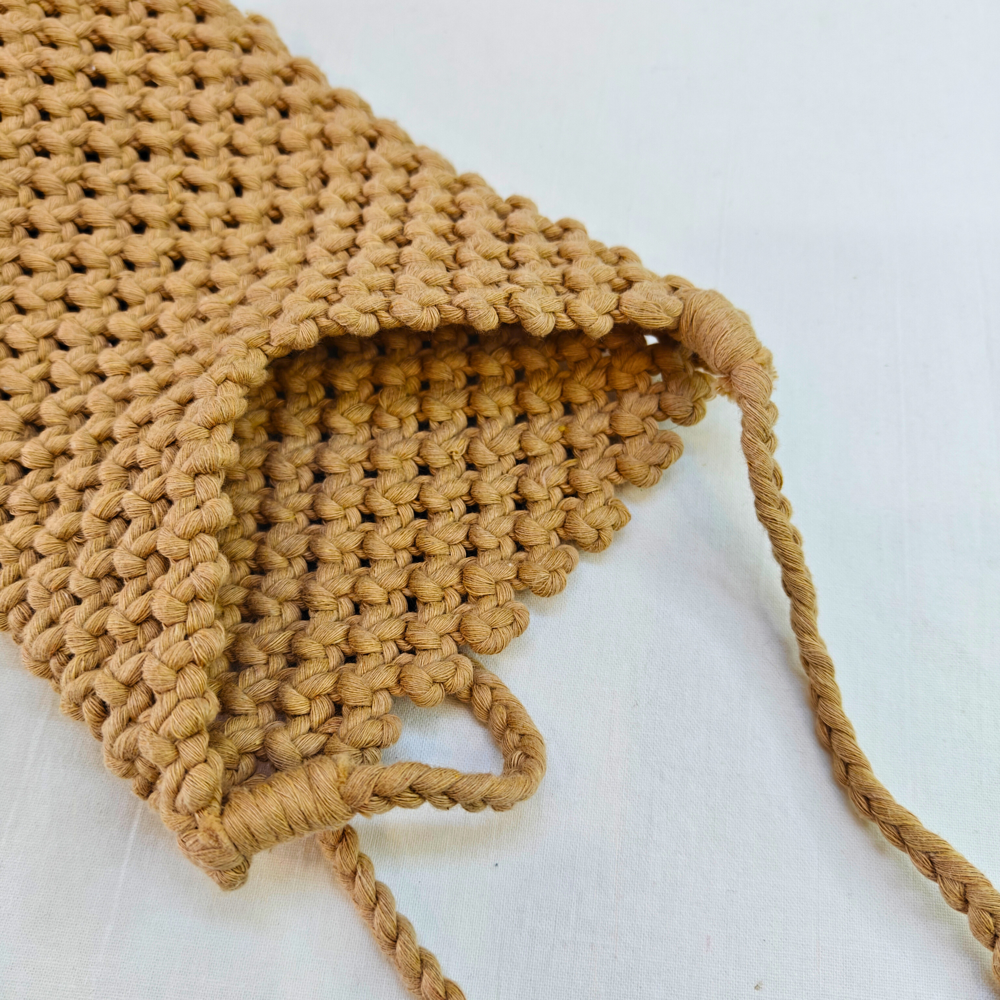 A neutral-toned, hand-crocheted pouch designed for on-the-go ease. With its soft sand color and sleek build, it's the ideal everyday sling to keep your basics close.