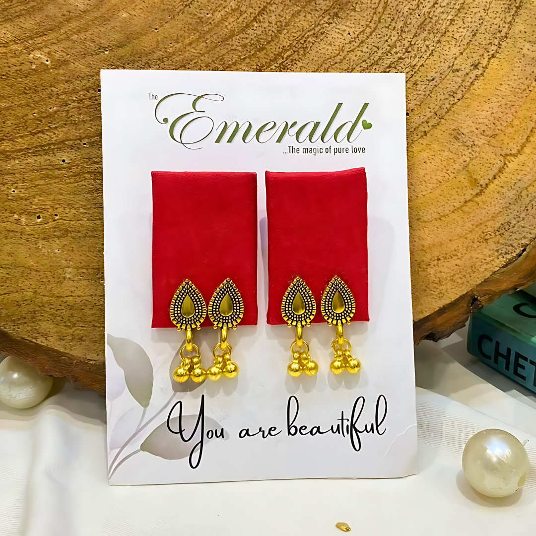 Make a bold impression with these elegant red rectangular fabric earrings.