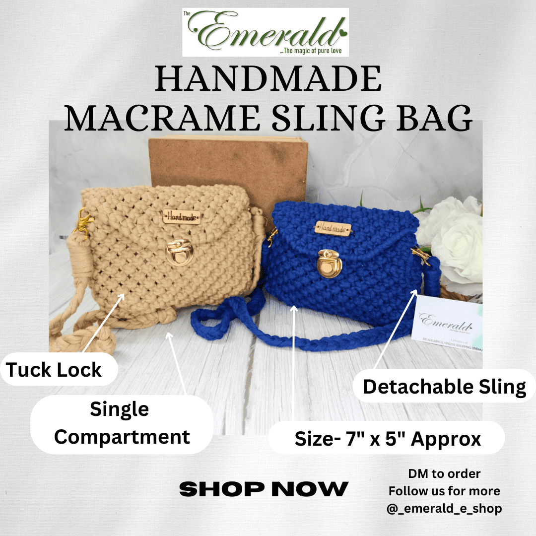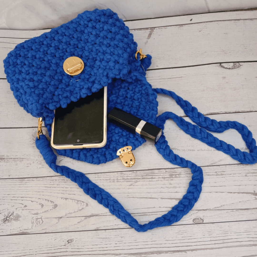 This Sling is perfect for her creative and free-spirited personality. Hand-knitted makes it unique and it adds a personal touch for gifting. Holds just what a girl needs - lip gloss and, a compact, small comb.