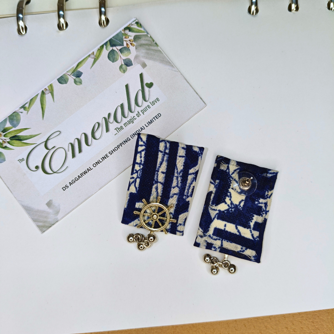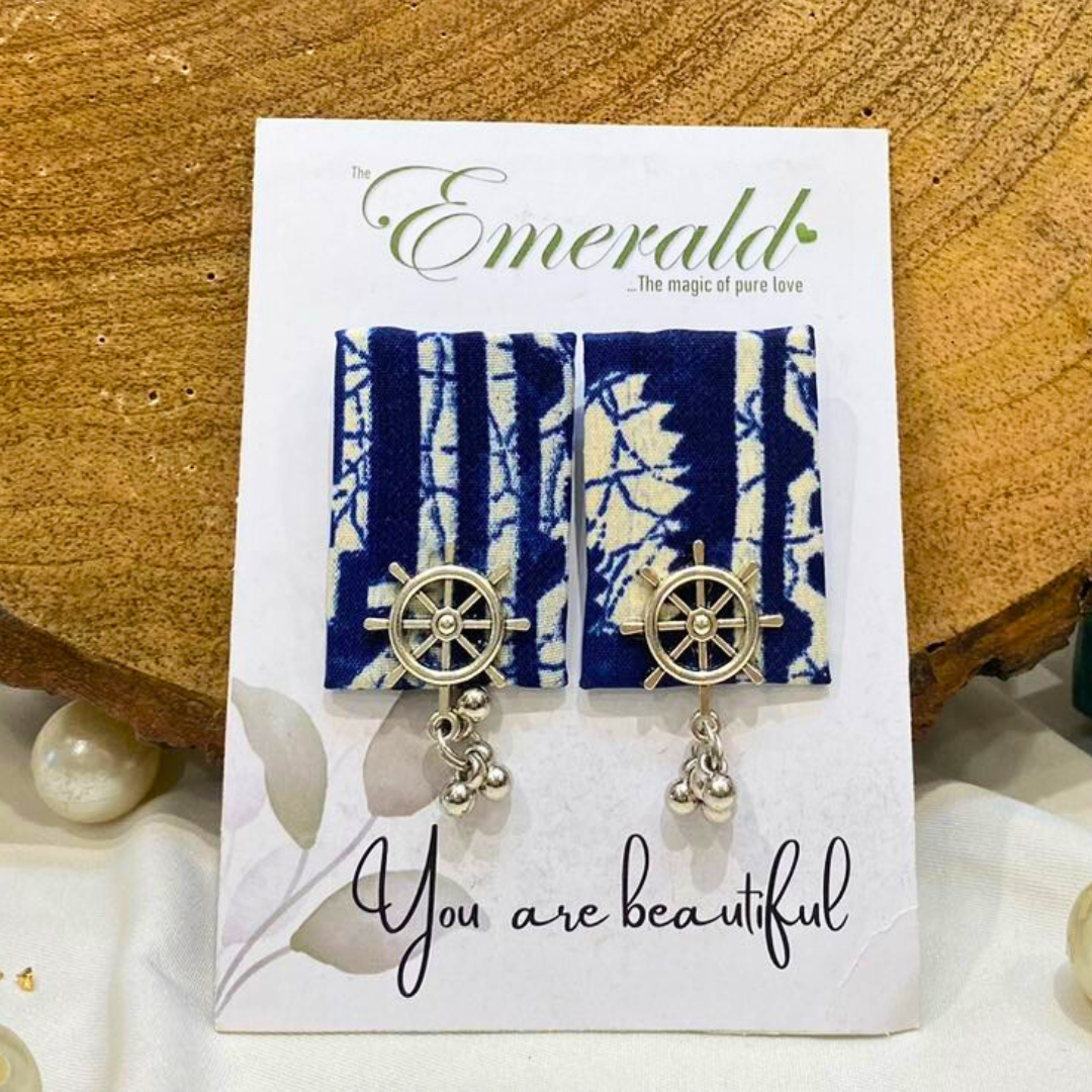 Make a stylish statement with designer fabric earrings that harmonize blue and white tones.